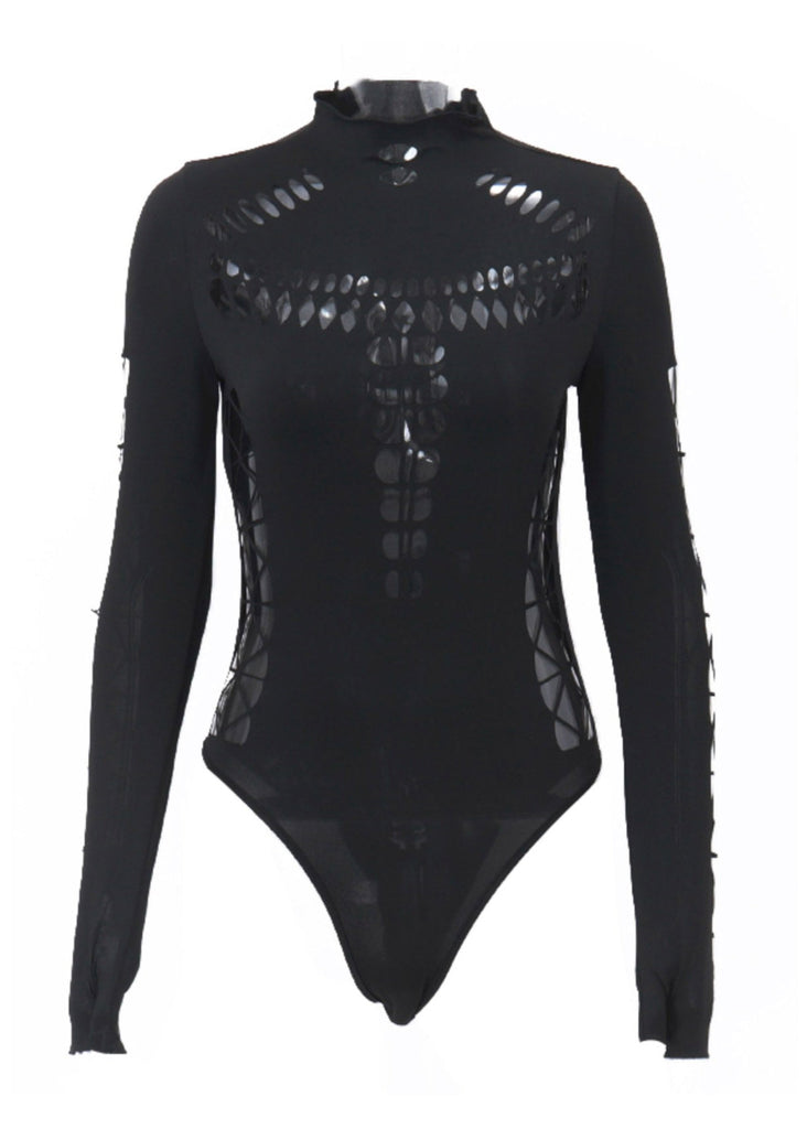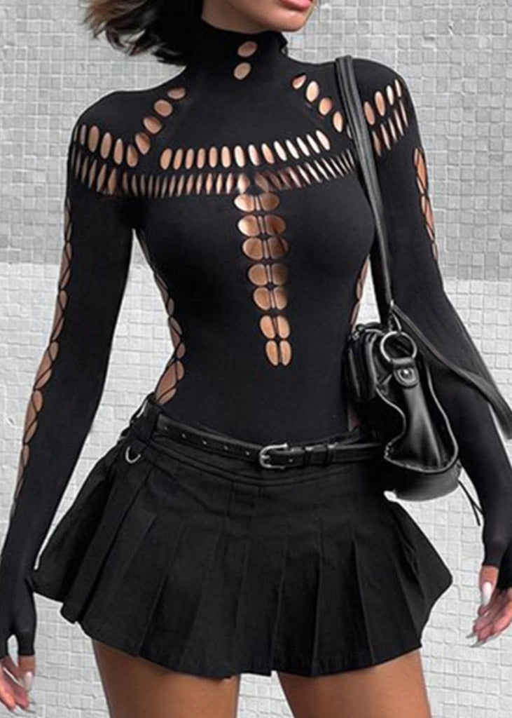 Life is too short to live without the Body noir original à col roulé en tulle ajouré. Be happy. Be Content. Be Satisfied.