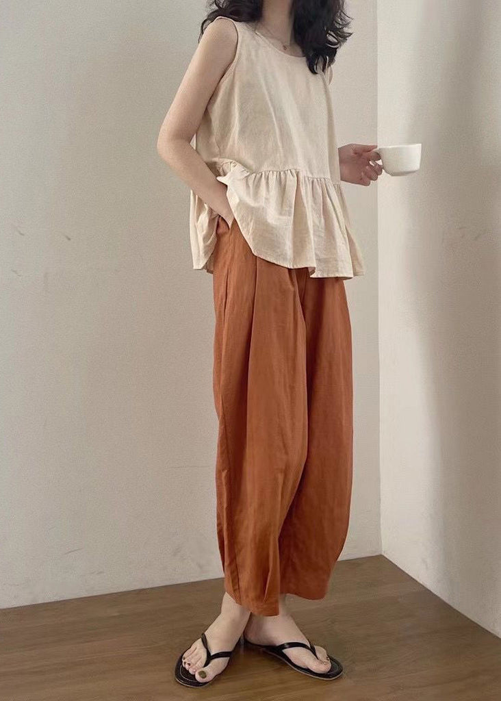 Ensemble deux pièces d'été oversize en lin abricot pour femme