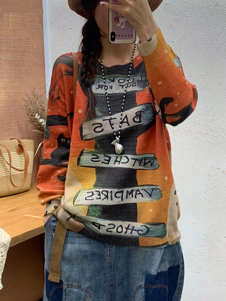 Pull en maille à col rond imprimé dessin animé pour femme, automne décontracté, AI1069