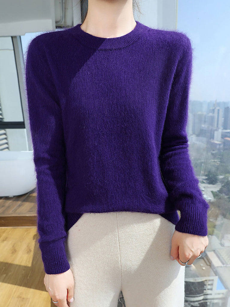 Pull d'automne décontracté pour femme, col rond, 100 % laine douce QU030