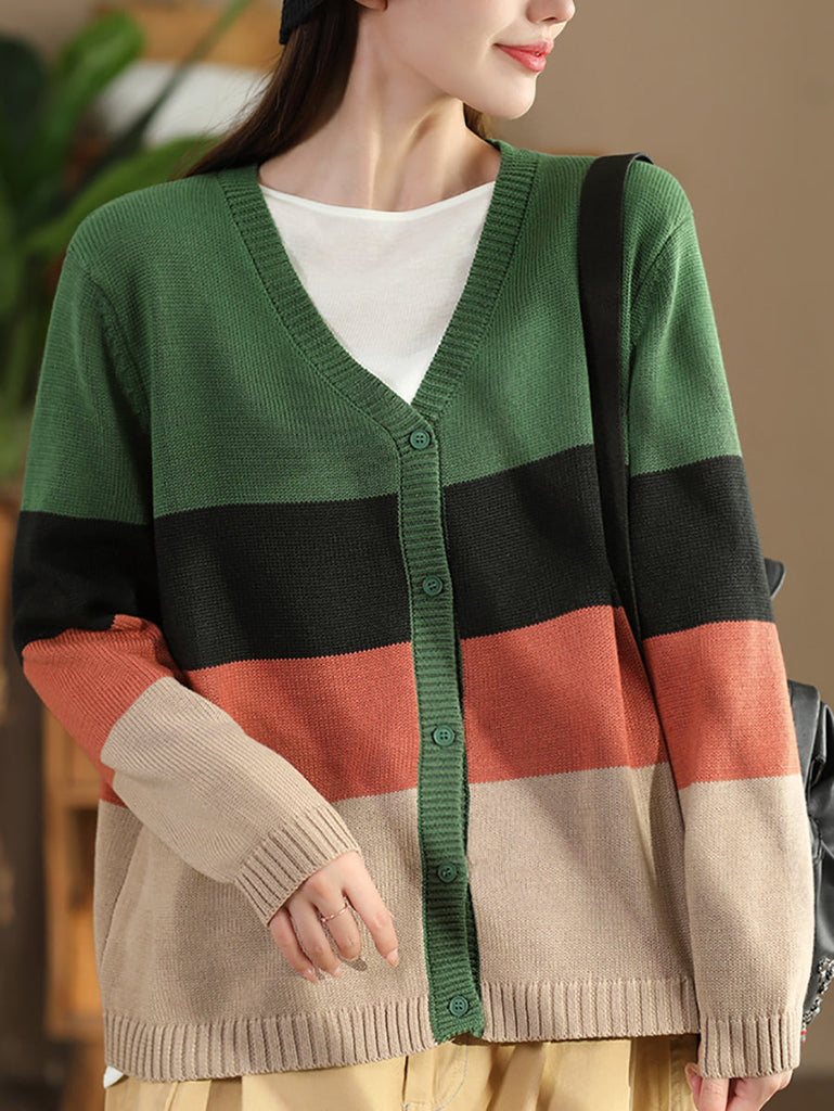 Pull en maille à col V colorblock pour femme, automne AS1012