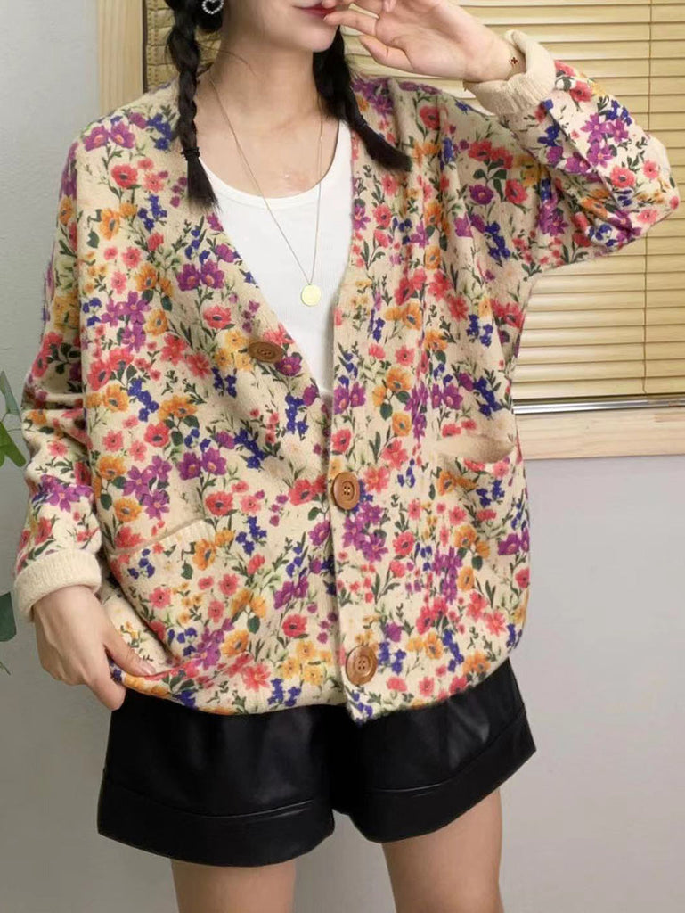 Pull en maille à col en V à motif floral pour femme, automne AH1048