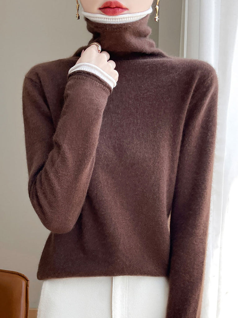 Pull en laine à col roulé colorblock pour femme, automne, BA1010