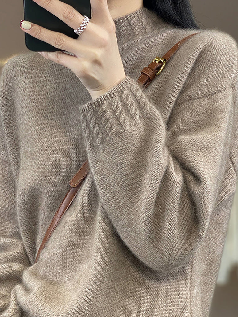 Pull mi-col roulé pour femme, automne, 100 % laine, QU010