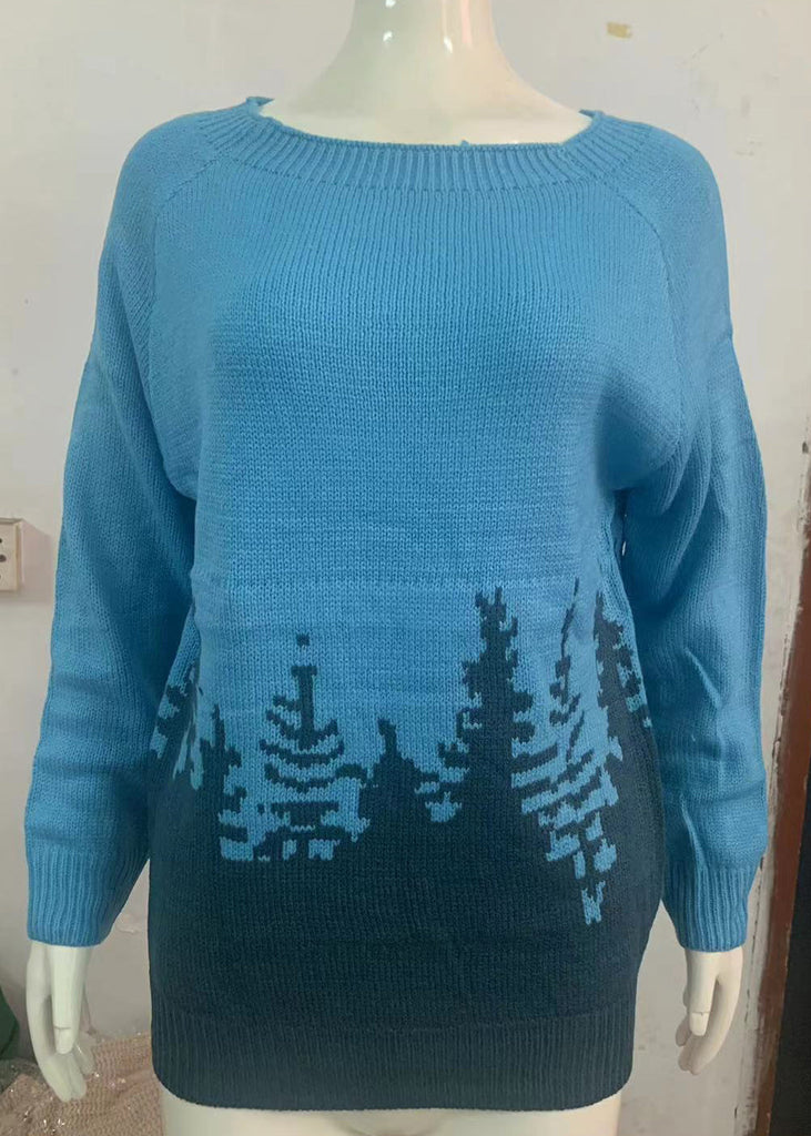 Pulls en maille douce à col rond bleu paon pour femme, automne QA012