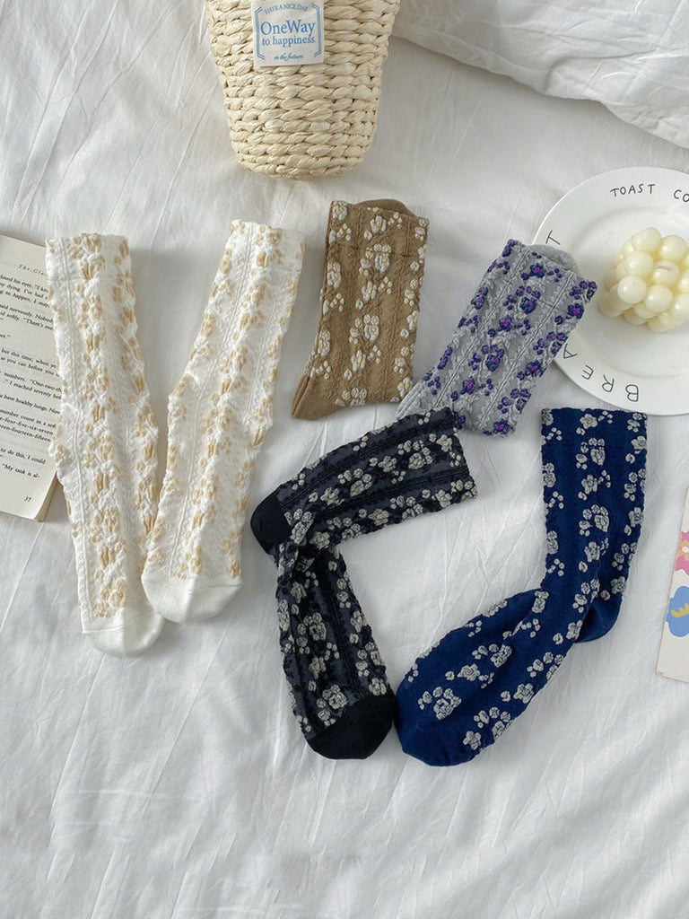 5 Pairs Women Floral Jacquard Cotton Socks AK1035