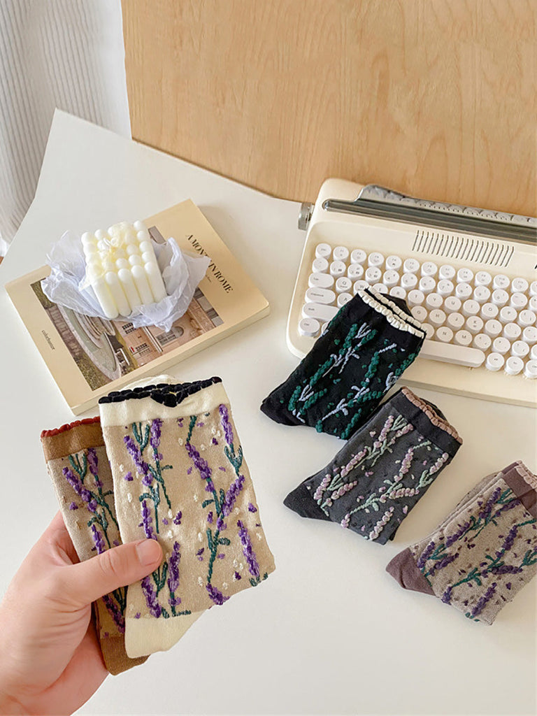Imagine if you could be satisfied and content with your purchase. That can very much be your reality with the 5 Pairs Women Flower Jacquard Colorblock Cotton Socks AH1024.