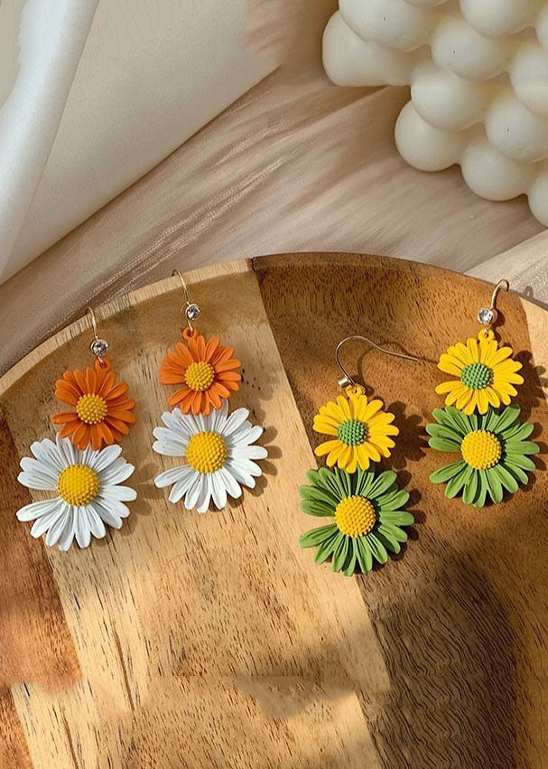 Beautiful Yellow Green Daisy Metal Drop Earrings HE1009