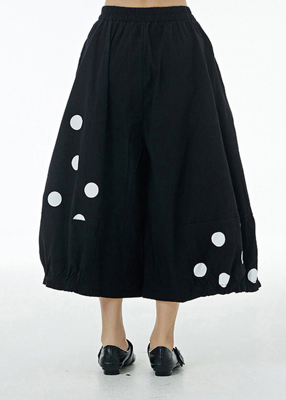 Black Elastic Waist Cotton Wide Leg Pants LY1176