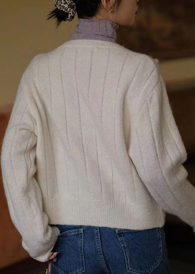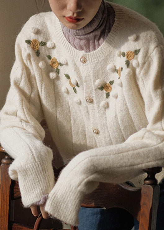 Bohemian Beige Embroidered Button Patchwork Knit Coats Fall TU047