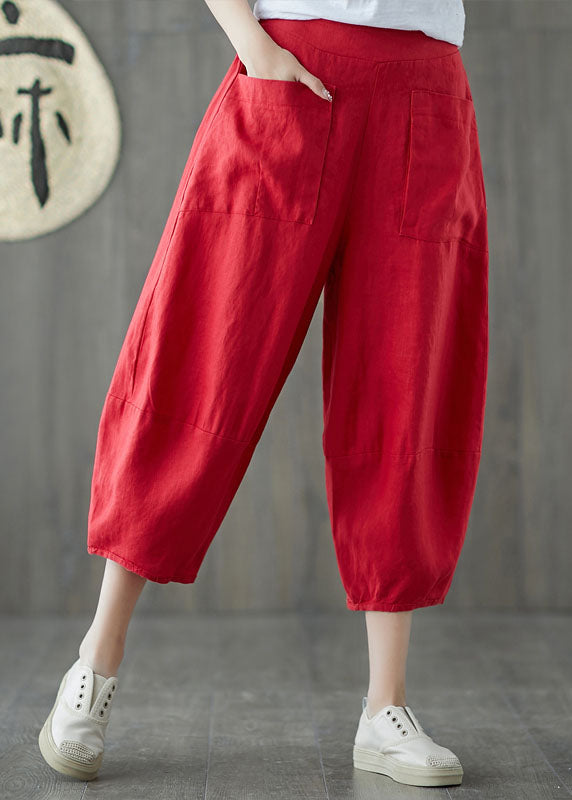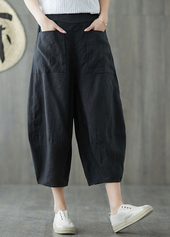 Bohemian Black Oversized Patchwork Pockets Linen Harem Pants Summer