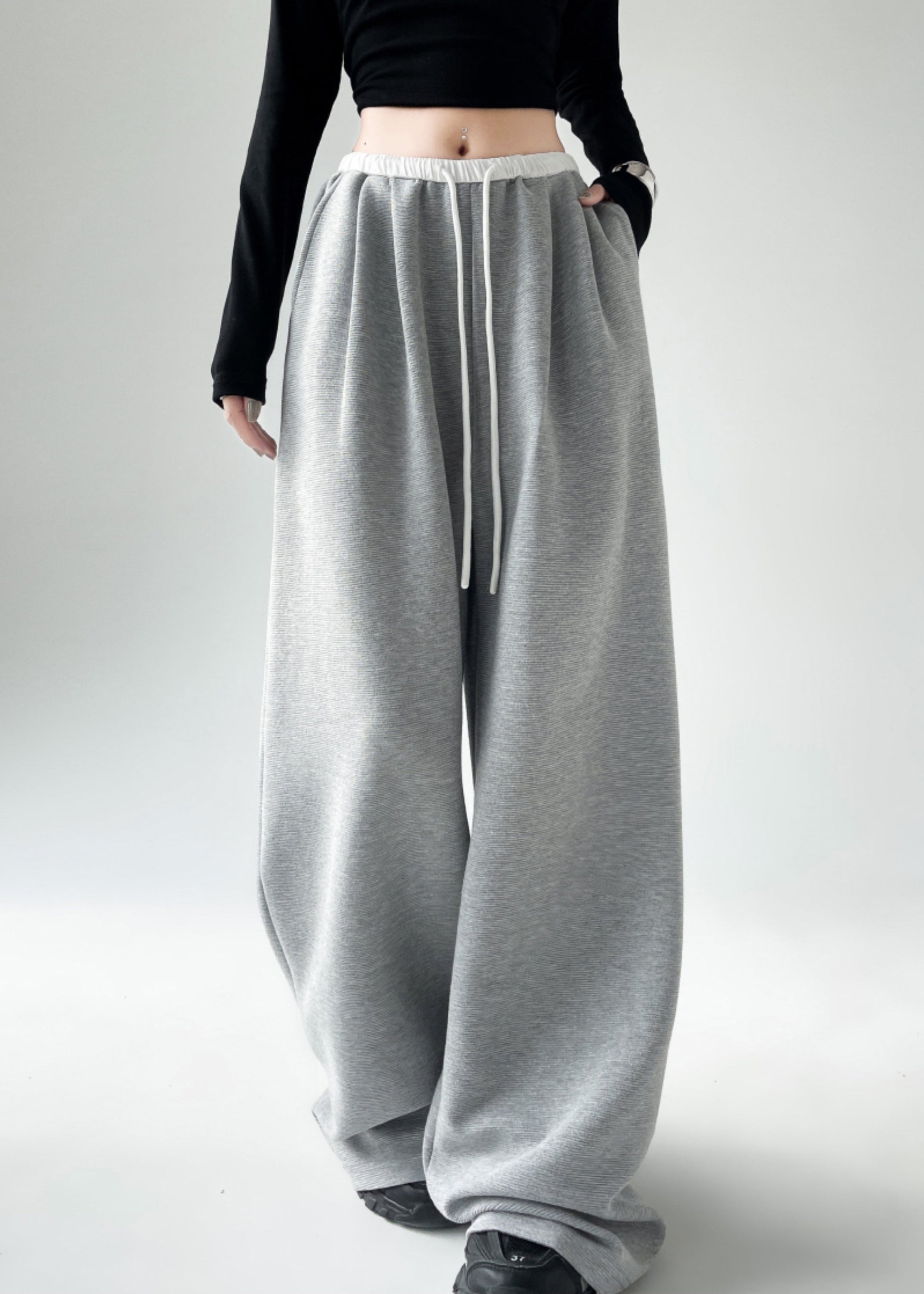 Casual Black Pockets Tie Waist Wide Leg Pants Spring TA043