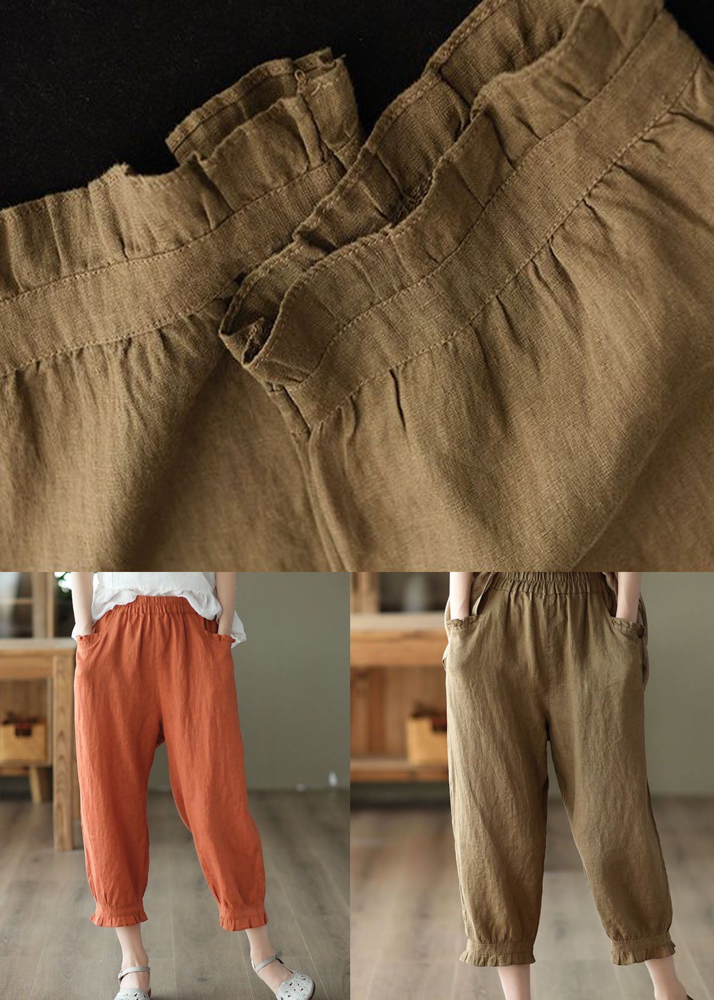 Coffee Pockets Patchwork Linen Crop Pants Cinched Summer LY0159