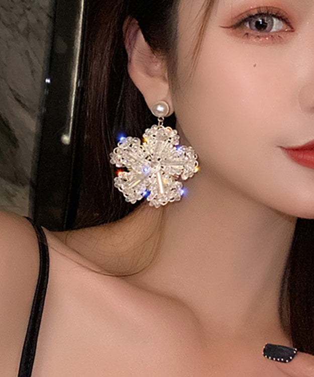 Elegant Gold Sterling Silver Floral Zircon Pearl Coloured Glaze Hoop Earrings LY1799