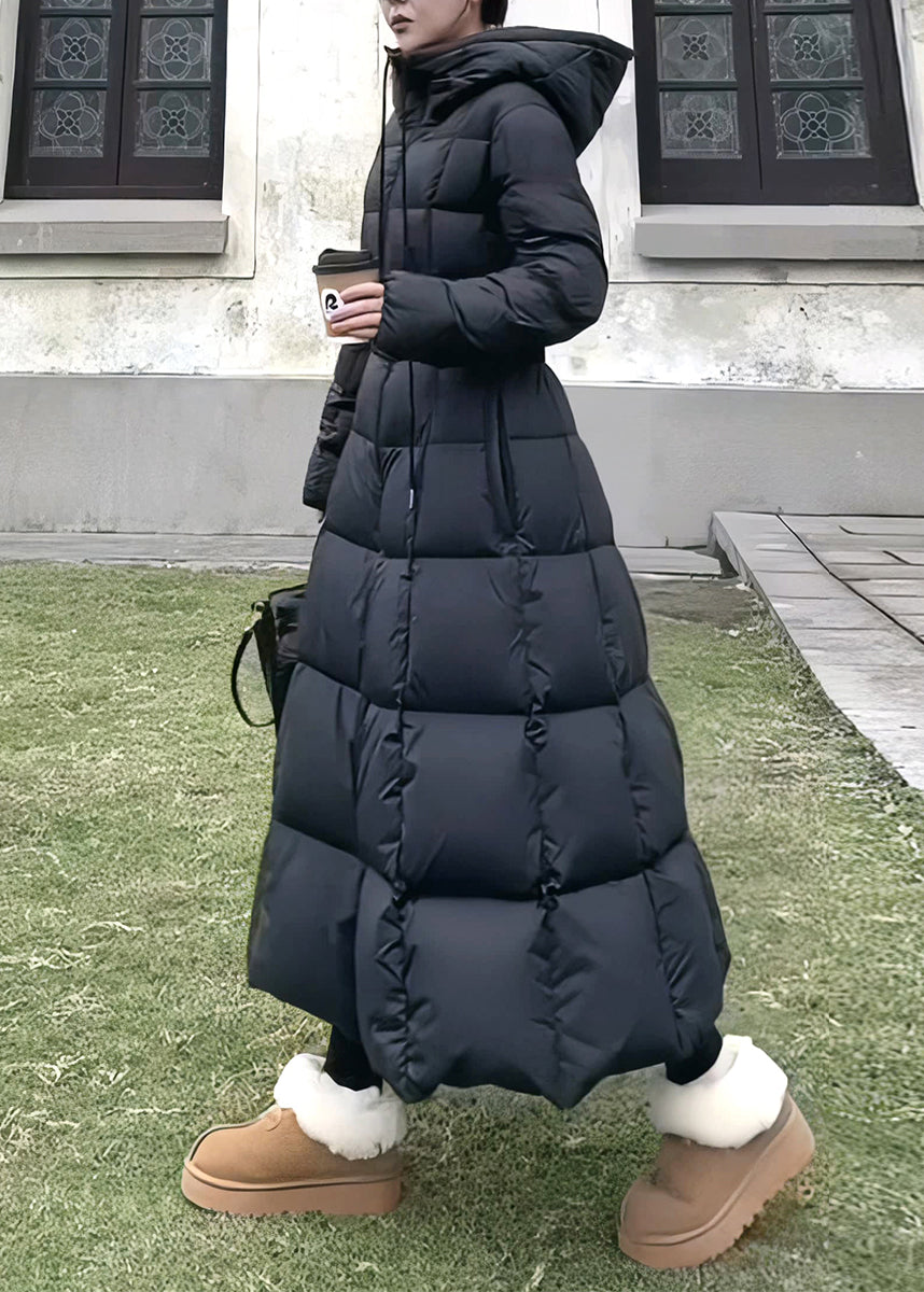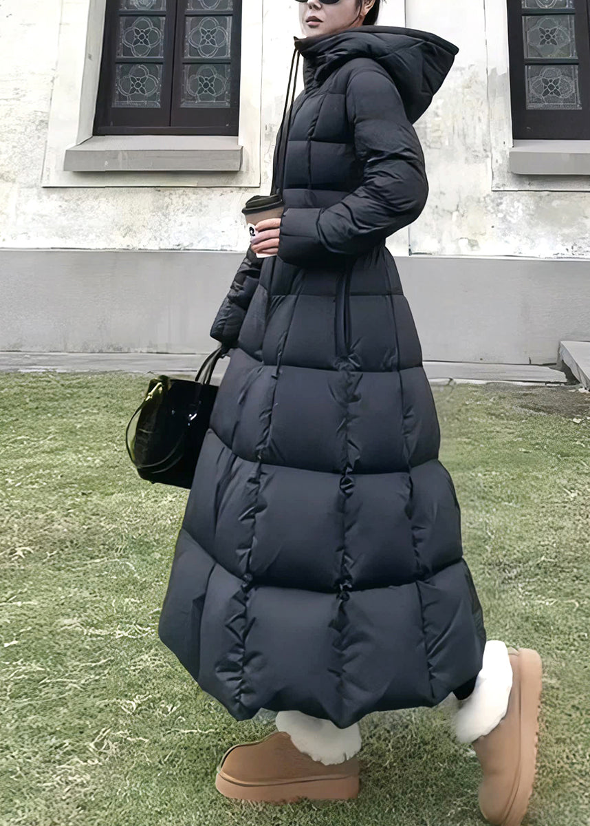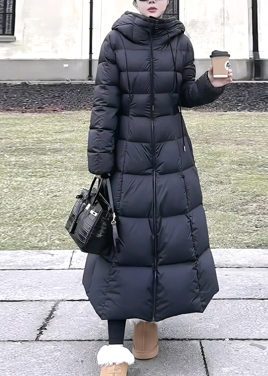 Fine Black Hooded Pockets Slim Fit Duck Down Parkaer Winter TD043