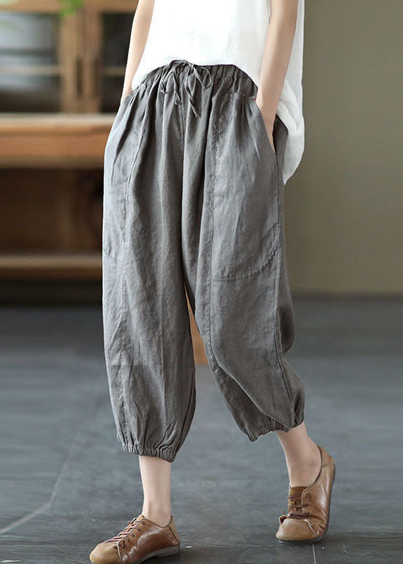 Grey Pockets Patchwork Linen Harem Pants Elastic Waist Summer