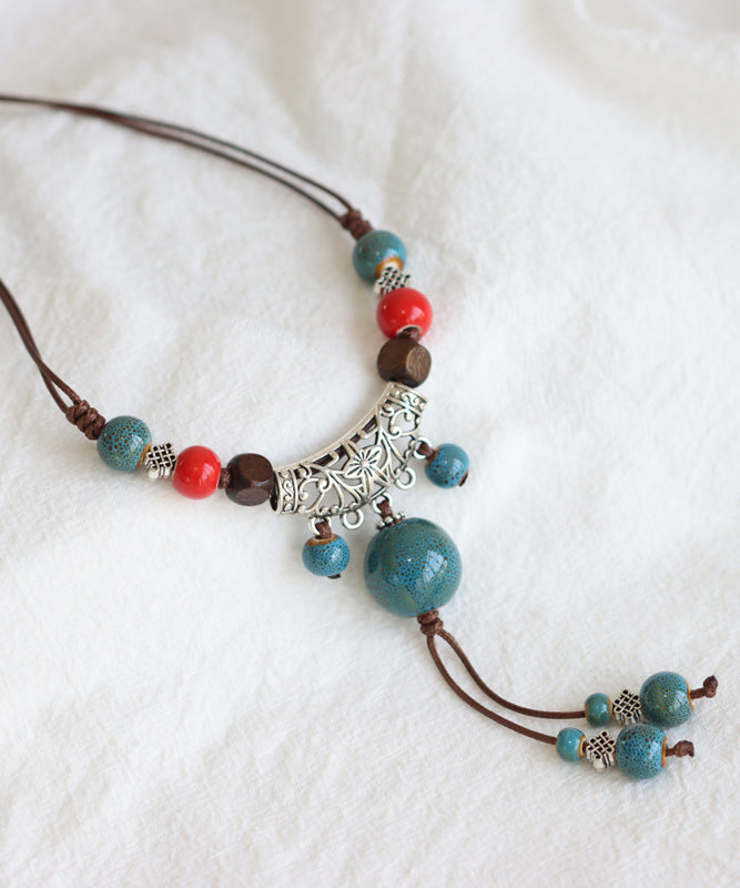 Handmade Bronze Coppery Woven Ceramics Hollow Out Tassel Pendant Necklace TX006