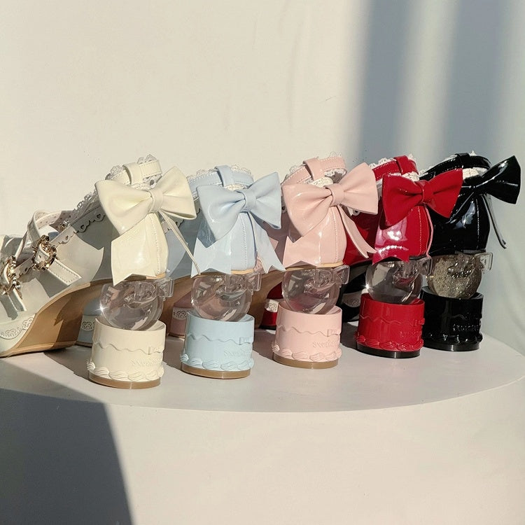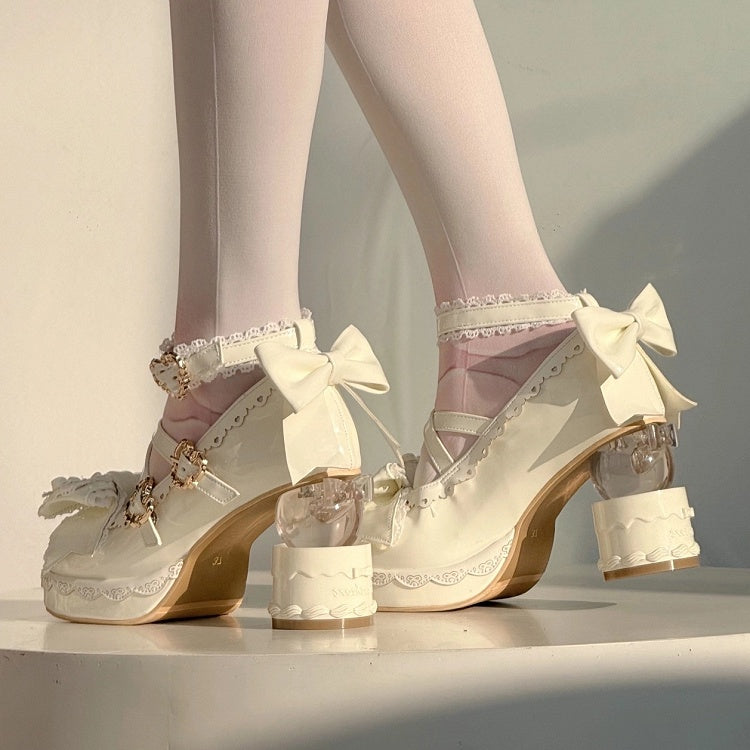- Heart Heel Cake with Mary Bow Buckle Platform Details Lolita High-heel White Janes Sweet