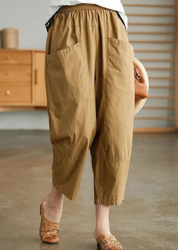 Loose Khaki Pockets Patchwork Cotton Crop Pants Summer