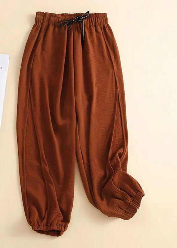 Natural Caramel Pockets Patchwork Cotton Lantern Pants Summer LY0590