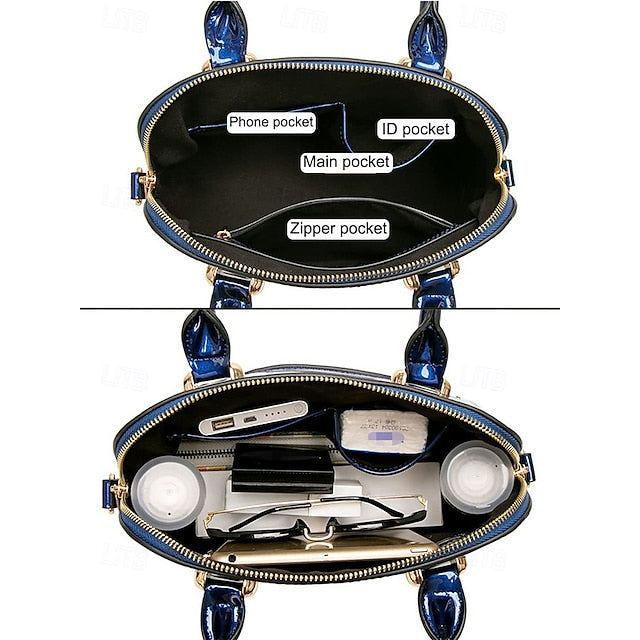 - Patent Green Women's Elegant Bag Shiny Leather Tote