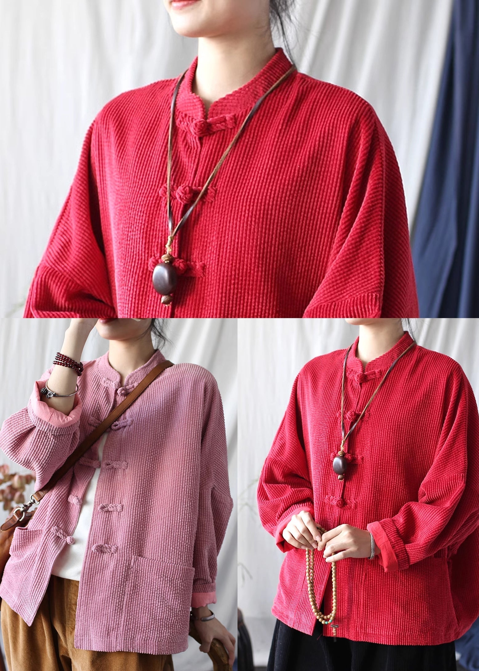Pink Corduroy Oriental Coat Oversized Spring TJ016