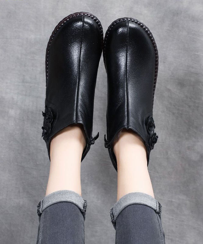 Plus Size Brown Cowhide Leather Warm Fleece Boots Zippered Ankle Boots