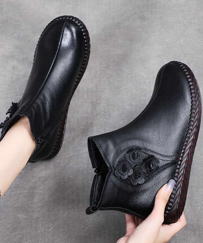 Plus Size Brown Cowhide Leather Warm Fleece Boots Zippered Ankle Boots LY0183