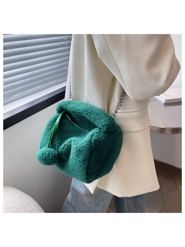Plush Pure Color Chain Casual Shoulder Bags OT105