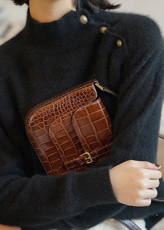 The sophisticated and exclusive Simple Black O-Neck Button Knit Sweaters boast a timeless elegance and long sleeves for added comfort.