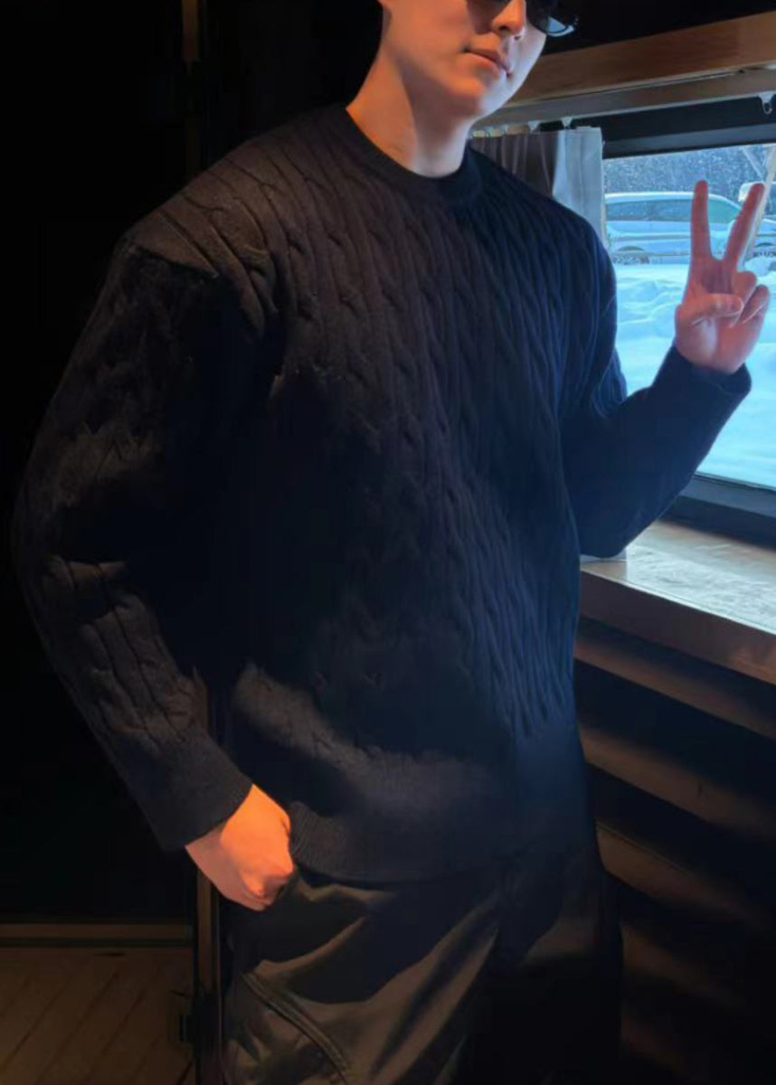 Simple Black O Neck Cable Knit Men Sweaters Spring TK013