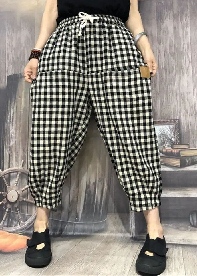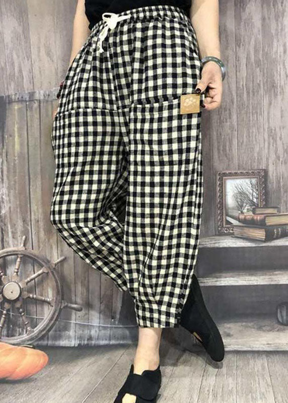 Simple Plaid Pocket Patchwork Cotton Crop Pants Summer