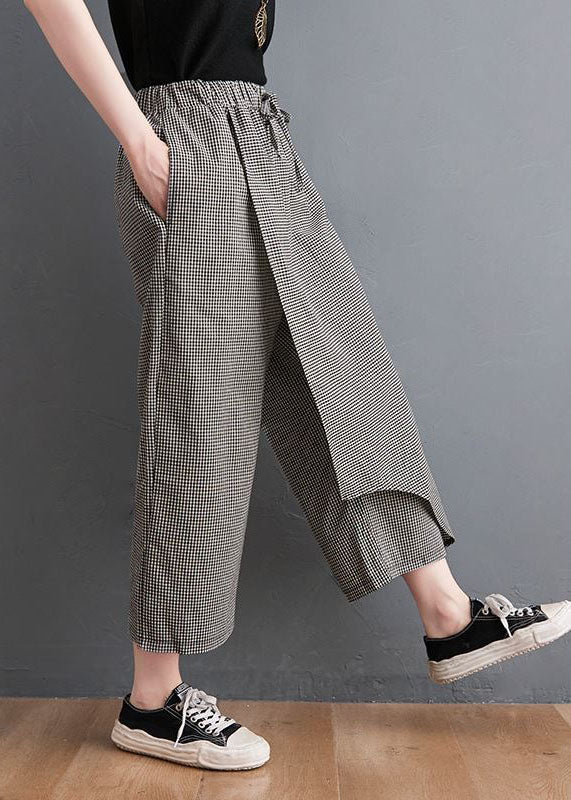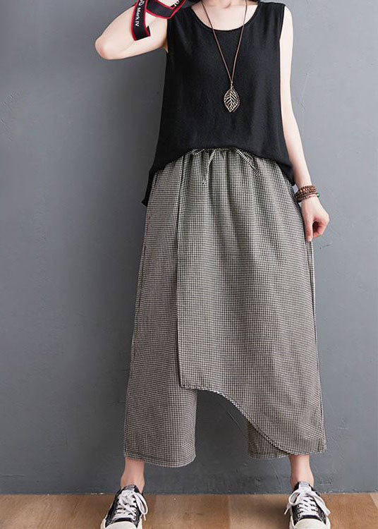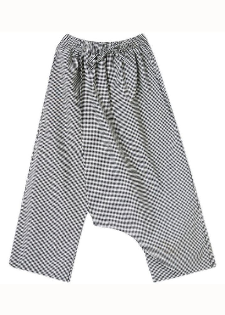 Unique Black Plaid Asymmetrical Design Cotton Crop Pants Summer