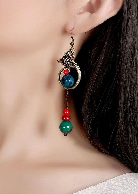 Vintage Bluebird Turquoise Original Design Copper Drop Earrings HE1019
