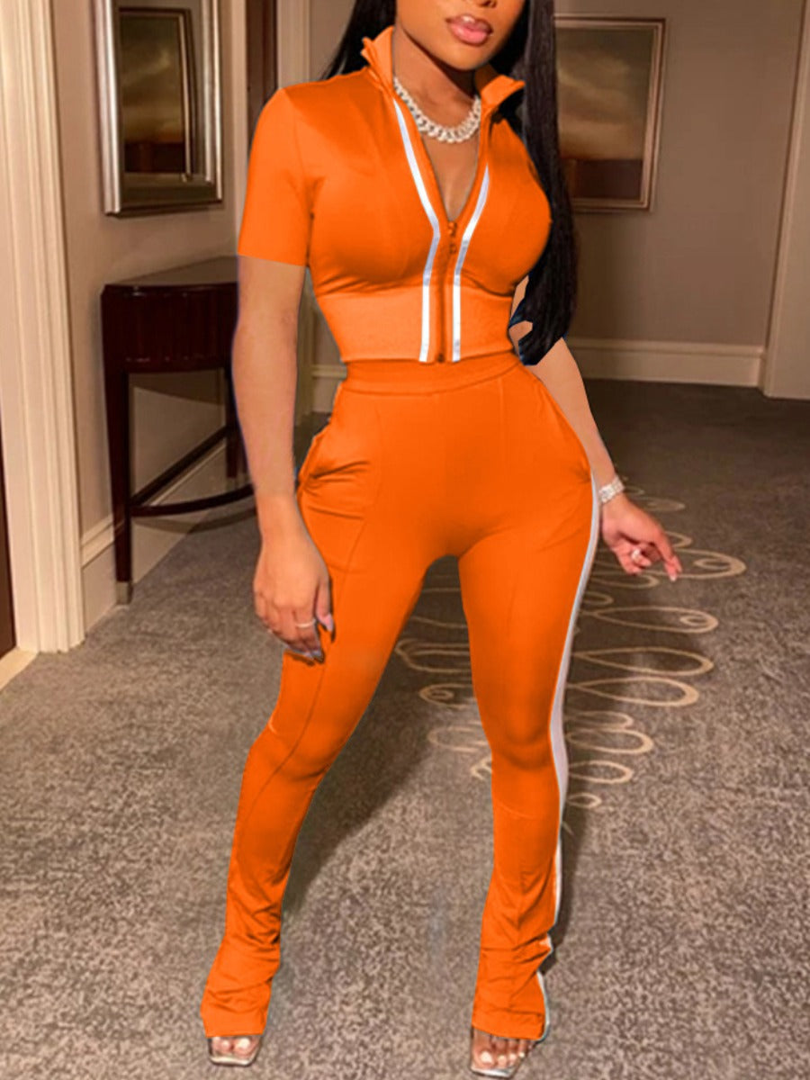 Product Title :BASICS Pocket Zipper Design Striped Pants Set