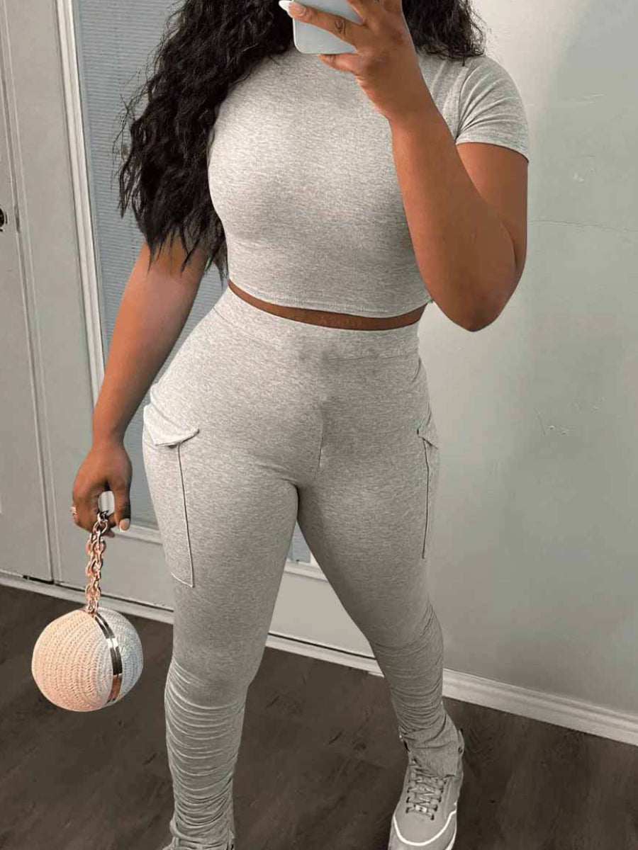 Product Title :Crop Top Drastring Side Pocket Pants Set