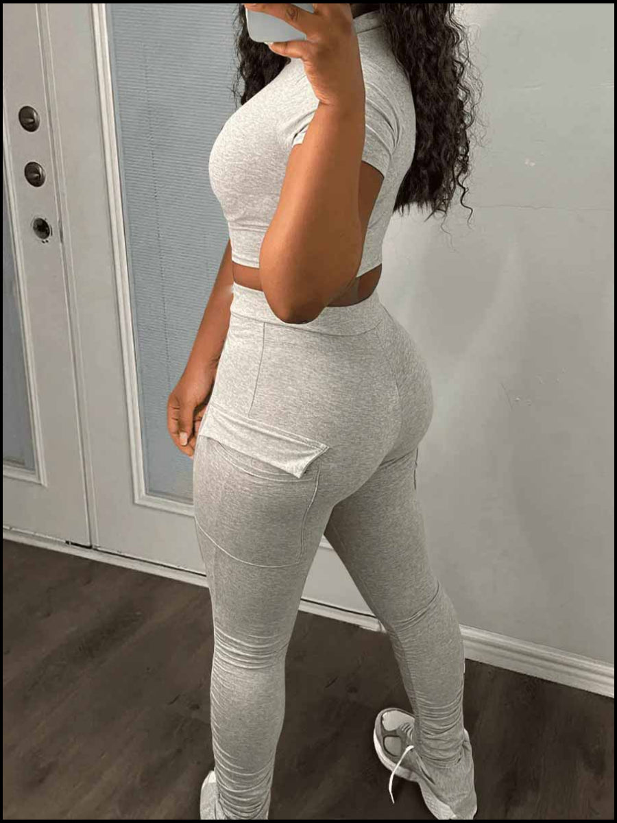 Crop Top Drastring Side Pocket Pants Set AR5010