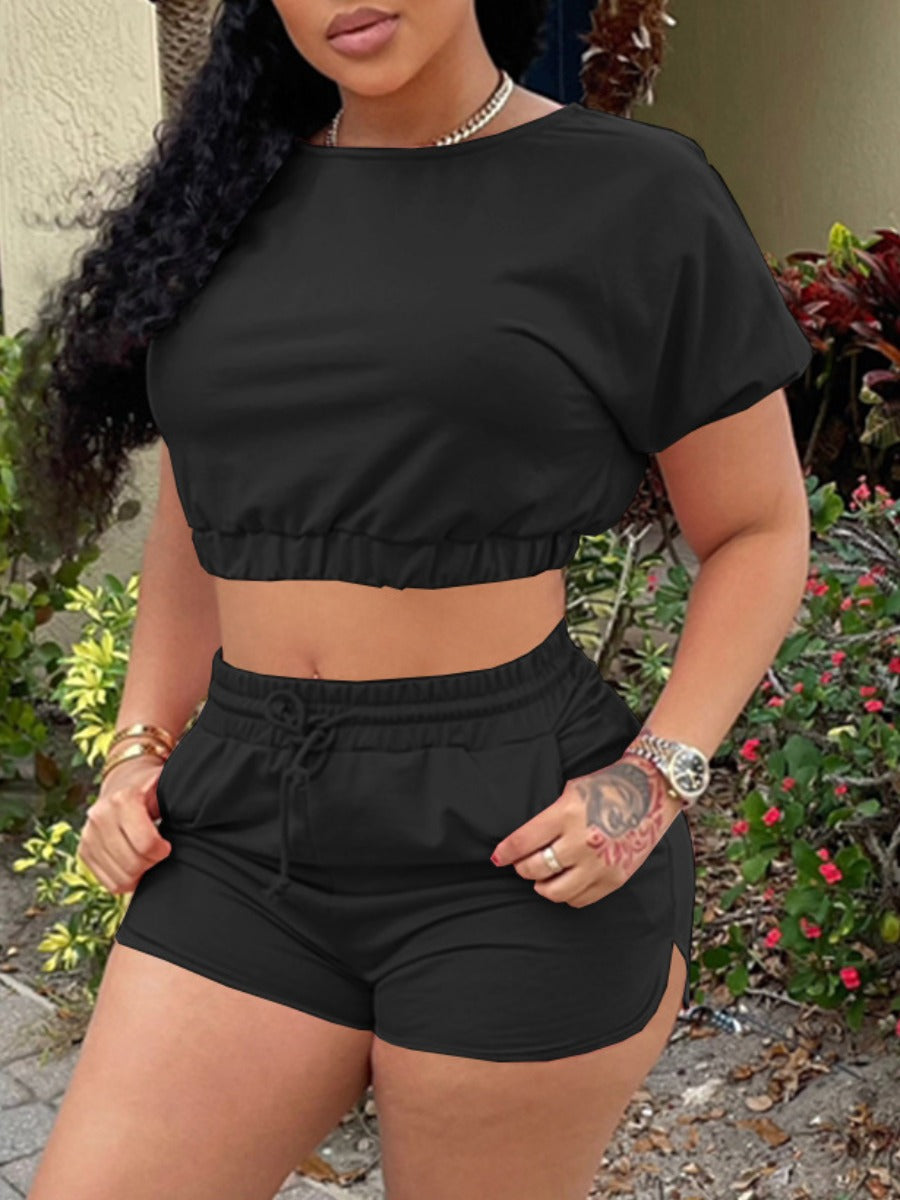 Product Title :Crop Top Drawstring Shorts Set