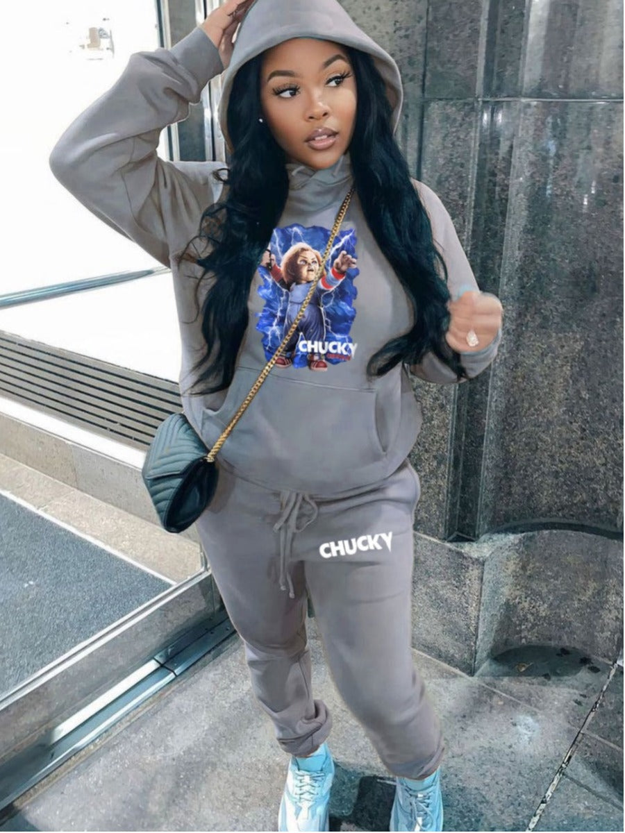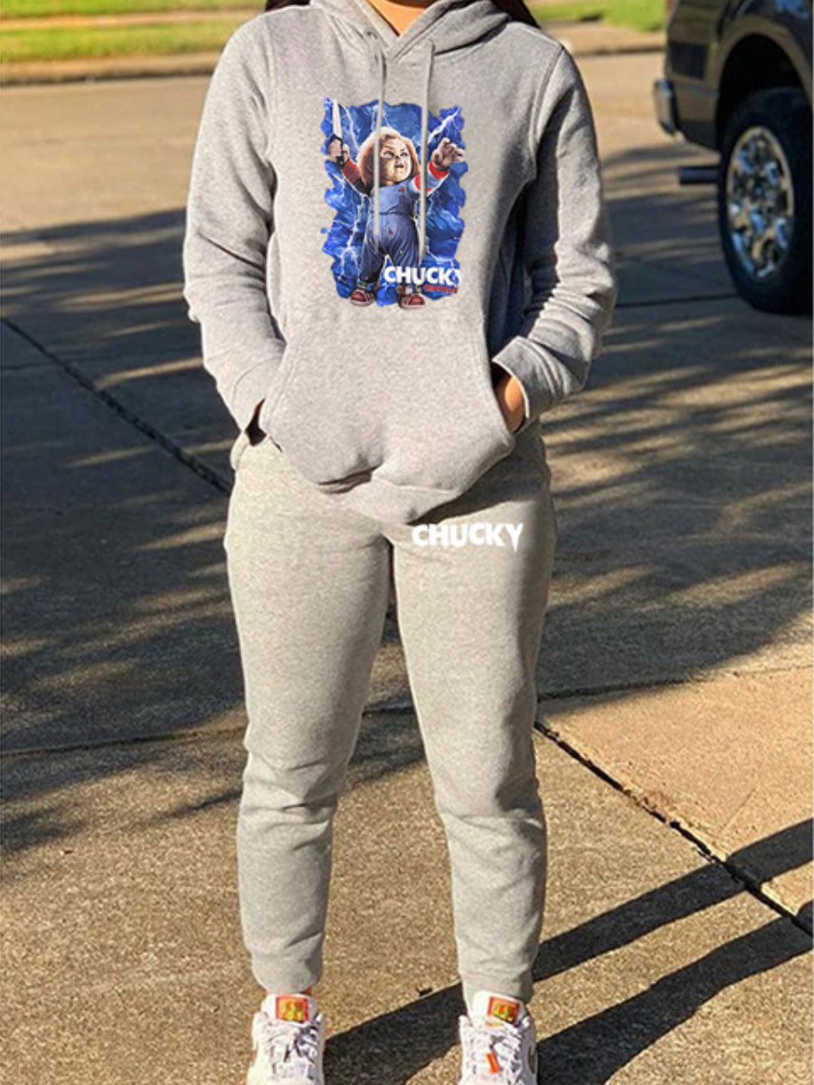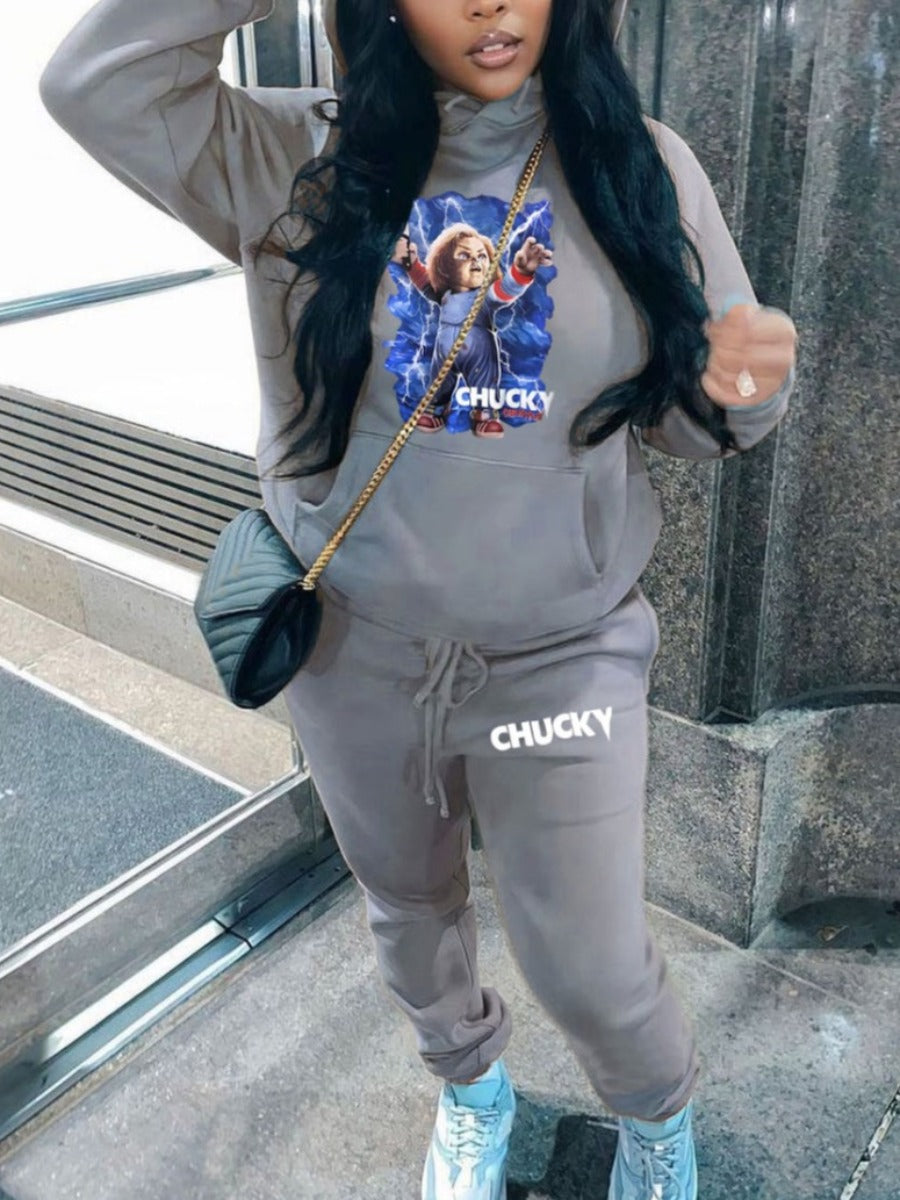 Product Title :Drawstring Print Regular Two-piece Pants Set