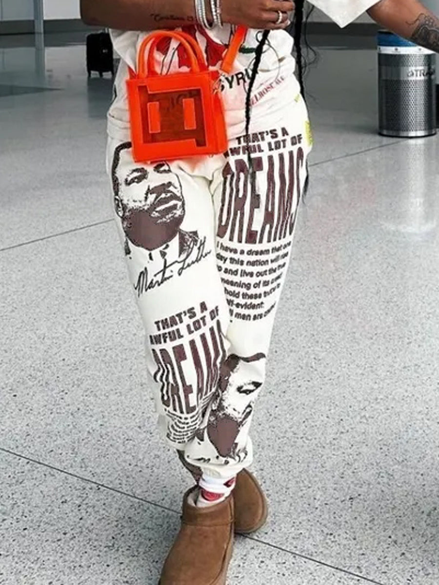 Product Title :Figure Letter Print Drawstring Loose Pants