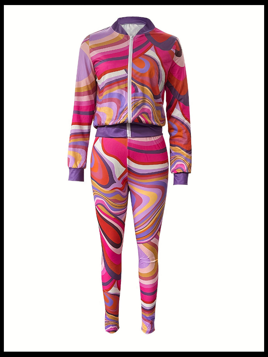 Product Title :Plus Size Mixed Print High Waist Pants Set