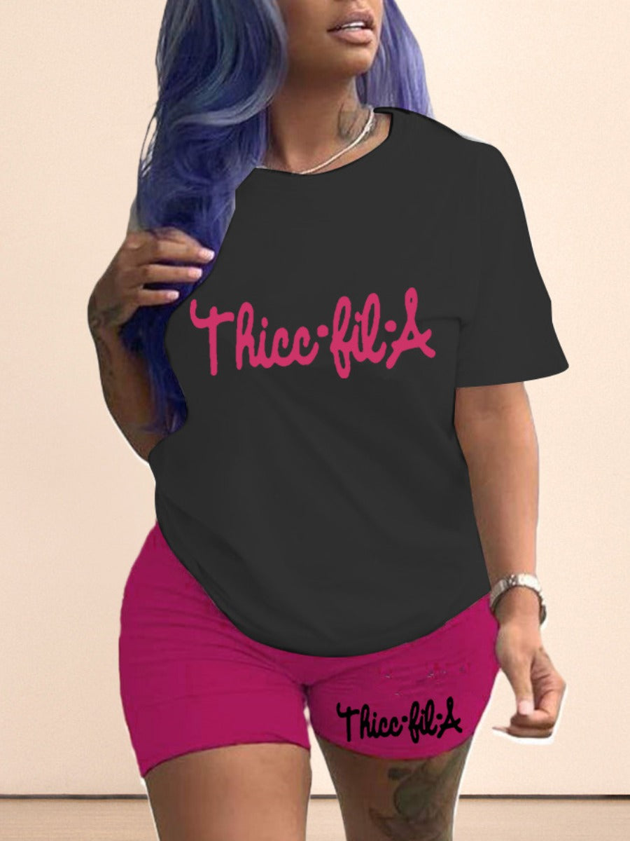 Product Title :Plus Size Round Neck Letter Print Shorts Set