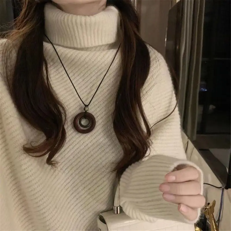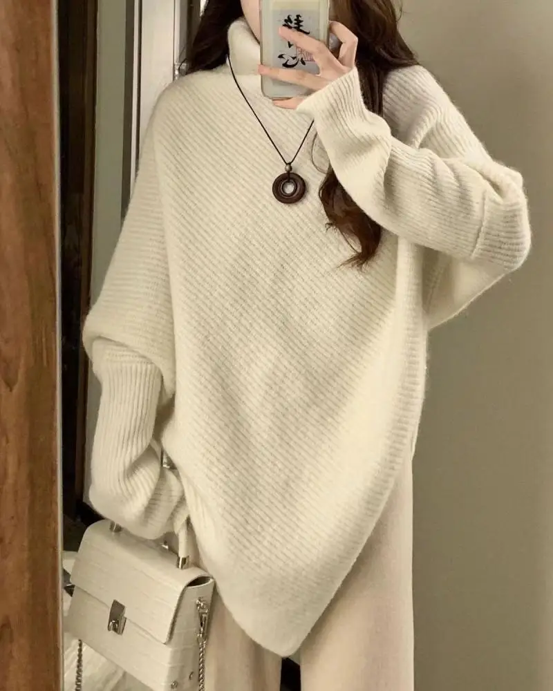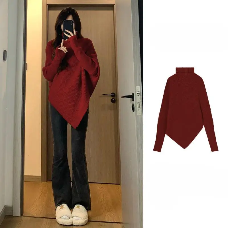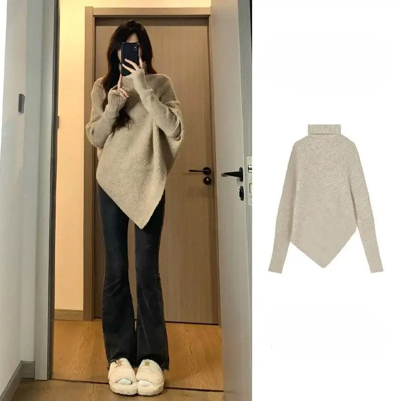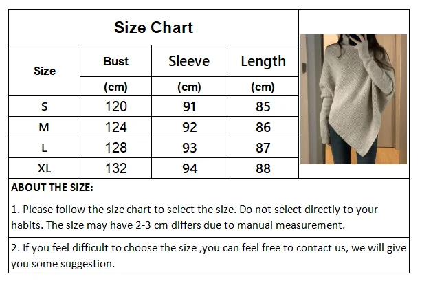 Winter Turtlenecks Women Korean Irregular Knitted Sweater Female Warm Solid Color Pullovers Lady Casual Loose Long Sleeve Jumper FC8510