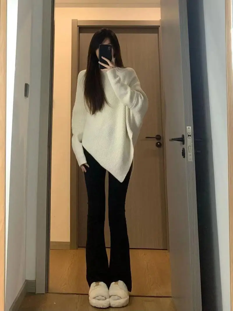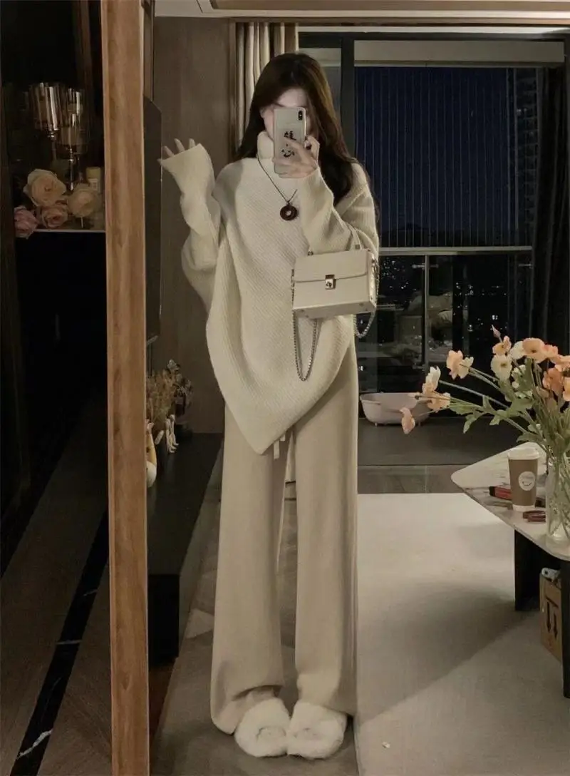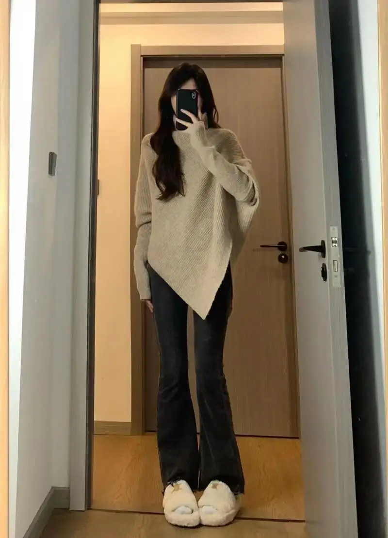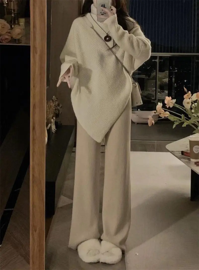 Winter Turtlenecks Women Korean Irregular Knitted Sweater Female Warm Solid Color Pullovers Lady Casual Loose Long Sleeve Jumper FC8510
